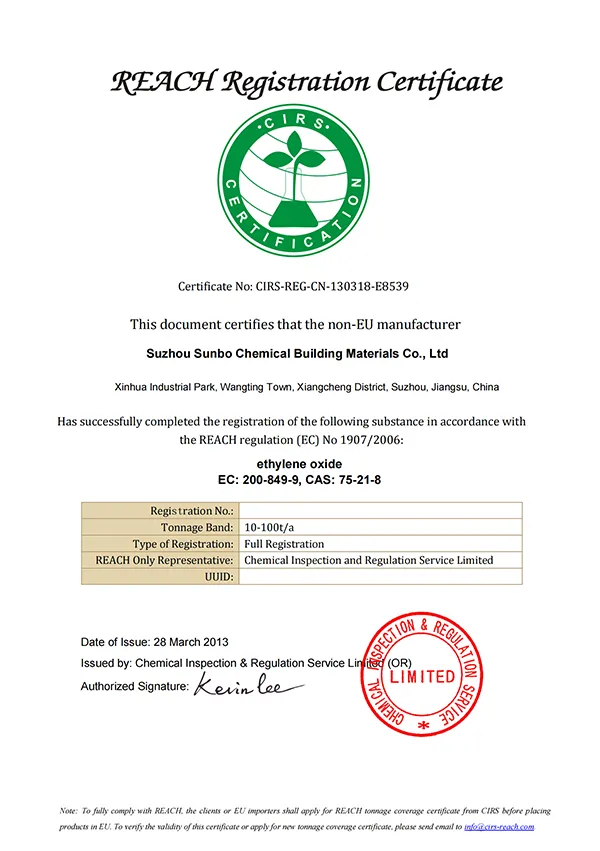 REACH Registration (Successfully registered Ethylene Oxide under REACH Regulation)